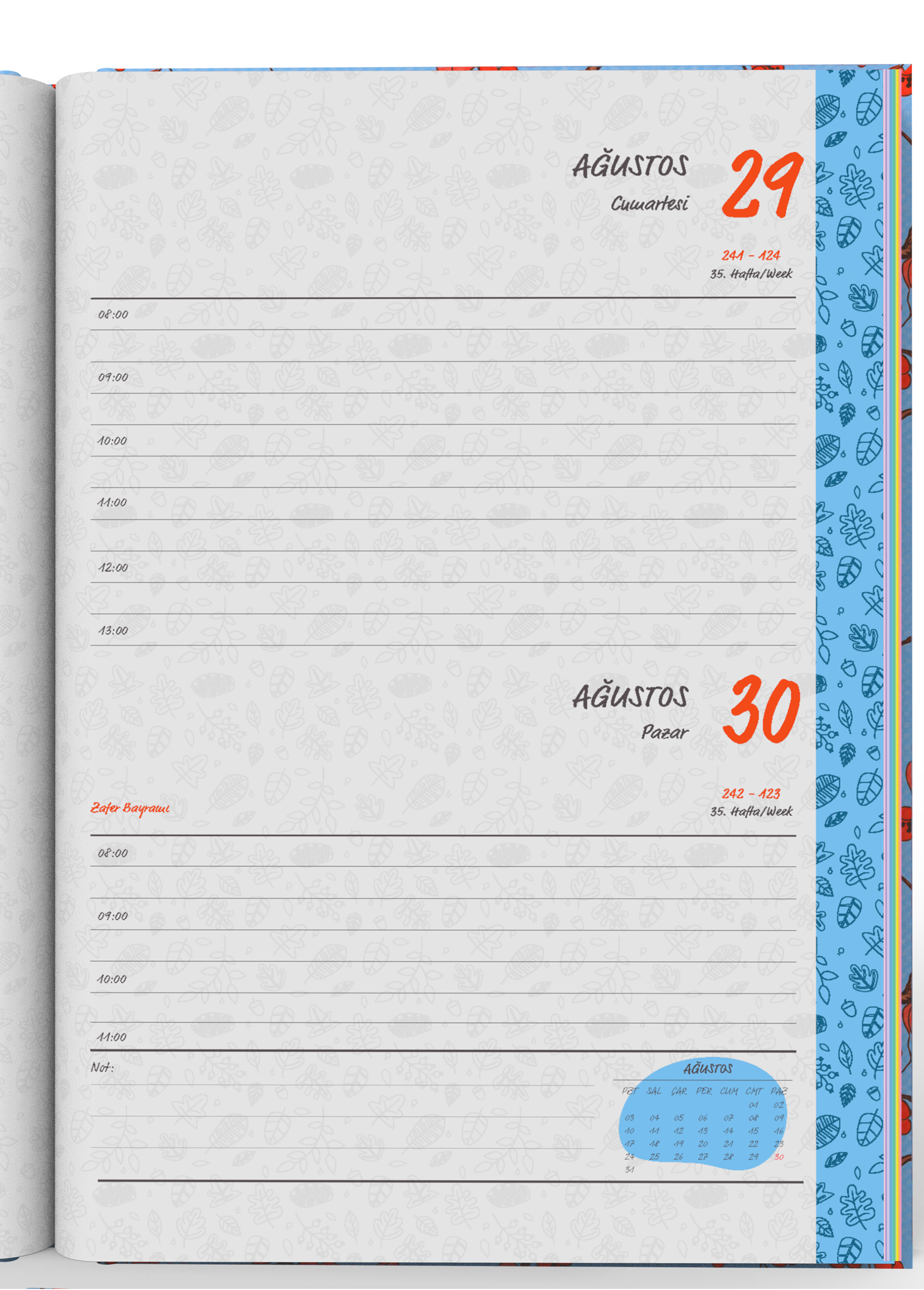 - Renkli Sayfalar: Her ay farklı bir renk ile planlamanı daha keyifli hale getirir.
