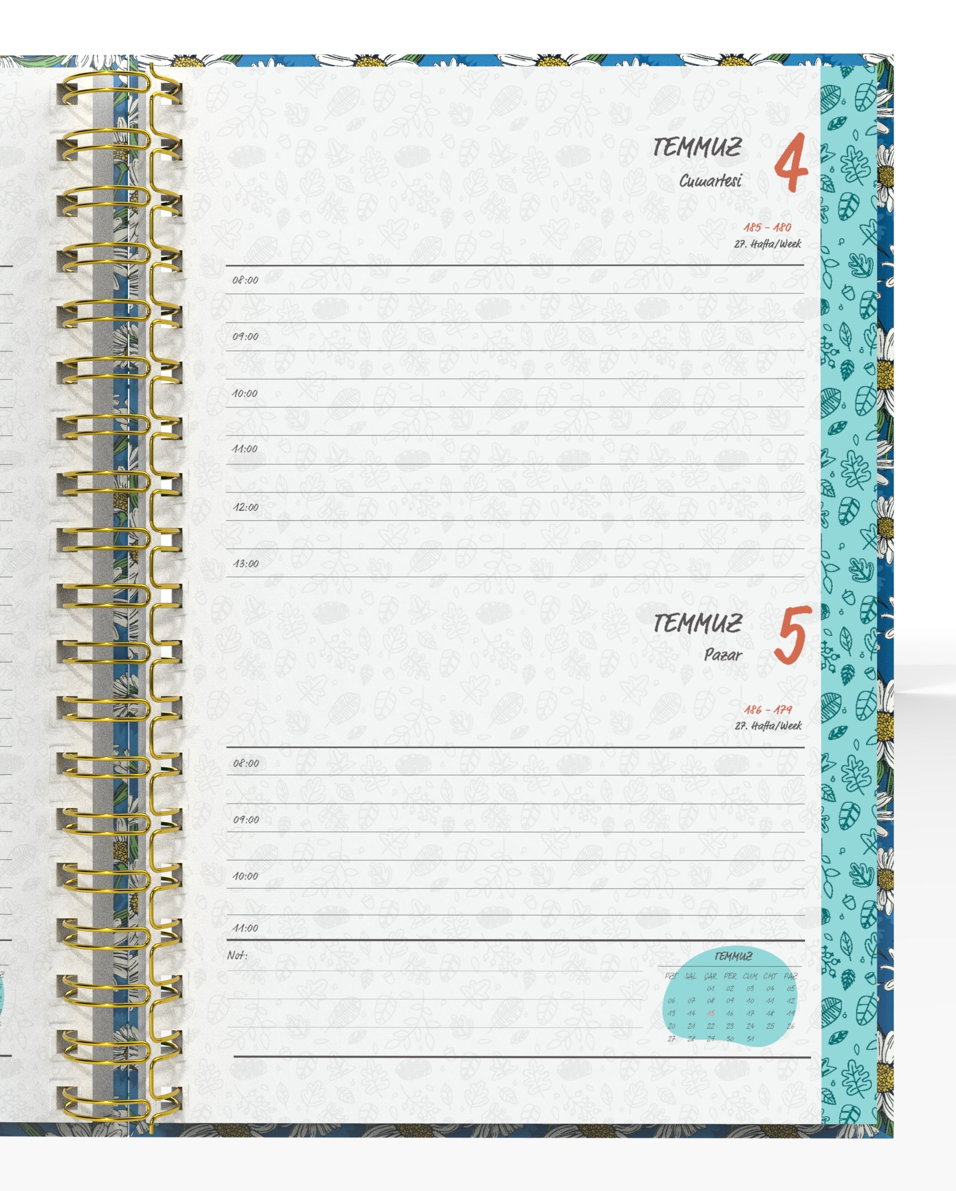 Günlük notlarınızı, hedeflerinizi ve planlarınızı zarif bir çiçek temasında toplamak için bu ajanda mükemmel bir seçim.