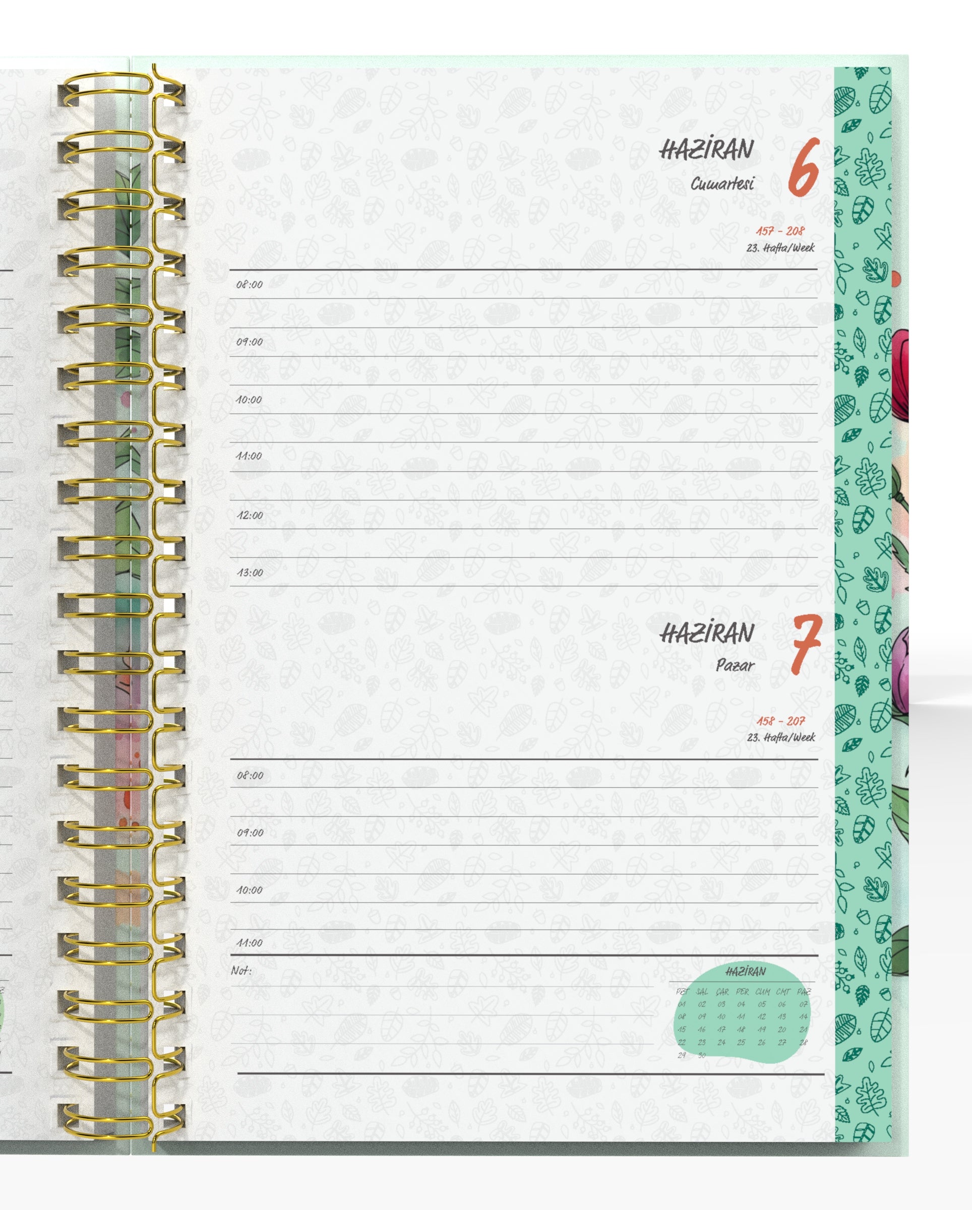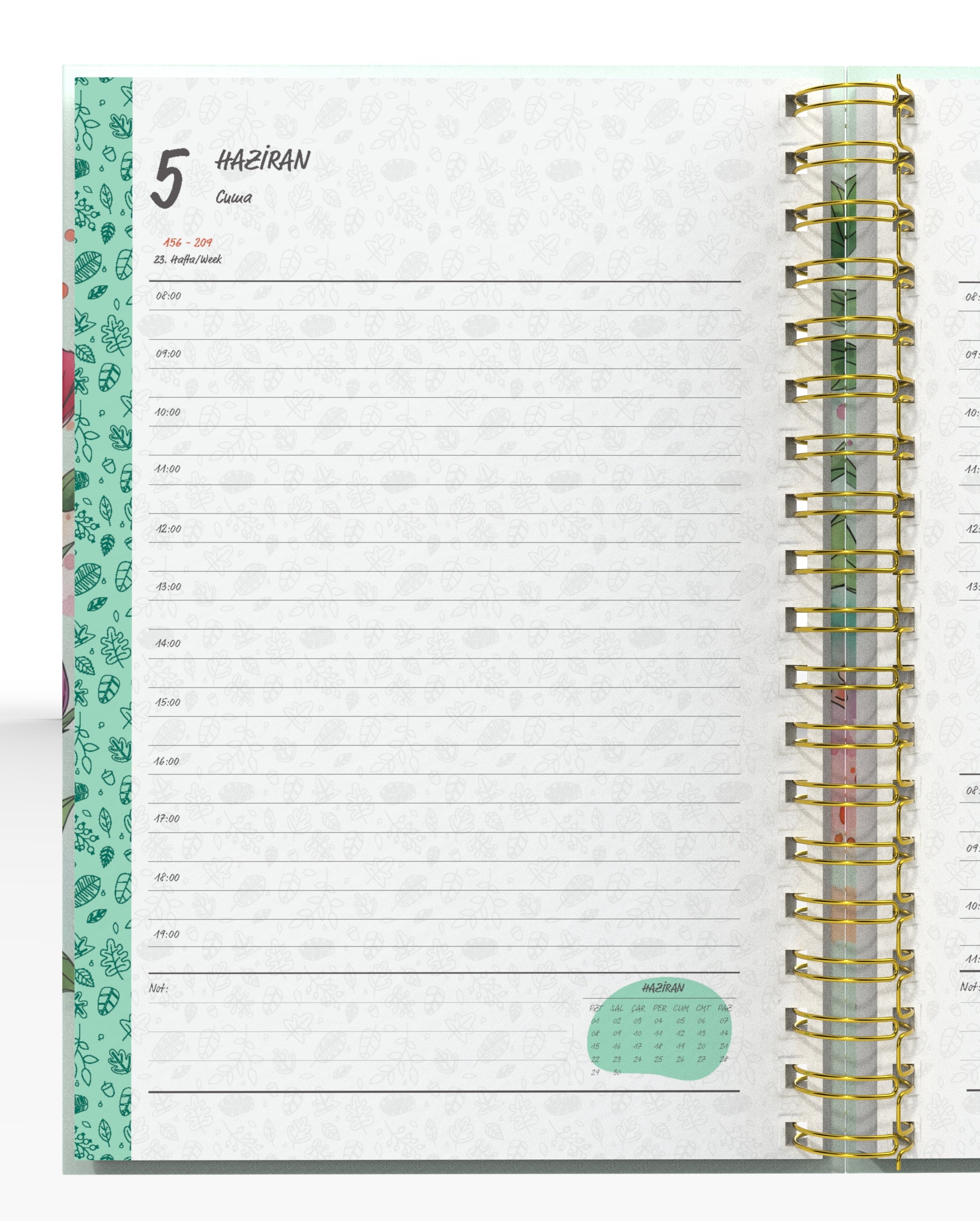 Günlük notlarınızı, hedeflerinizi ve planlarınızı zarif bir çiçek temasında toplamak için bu ajanda mükemmel bir seçim.