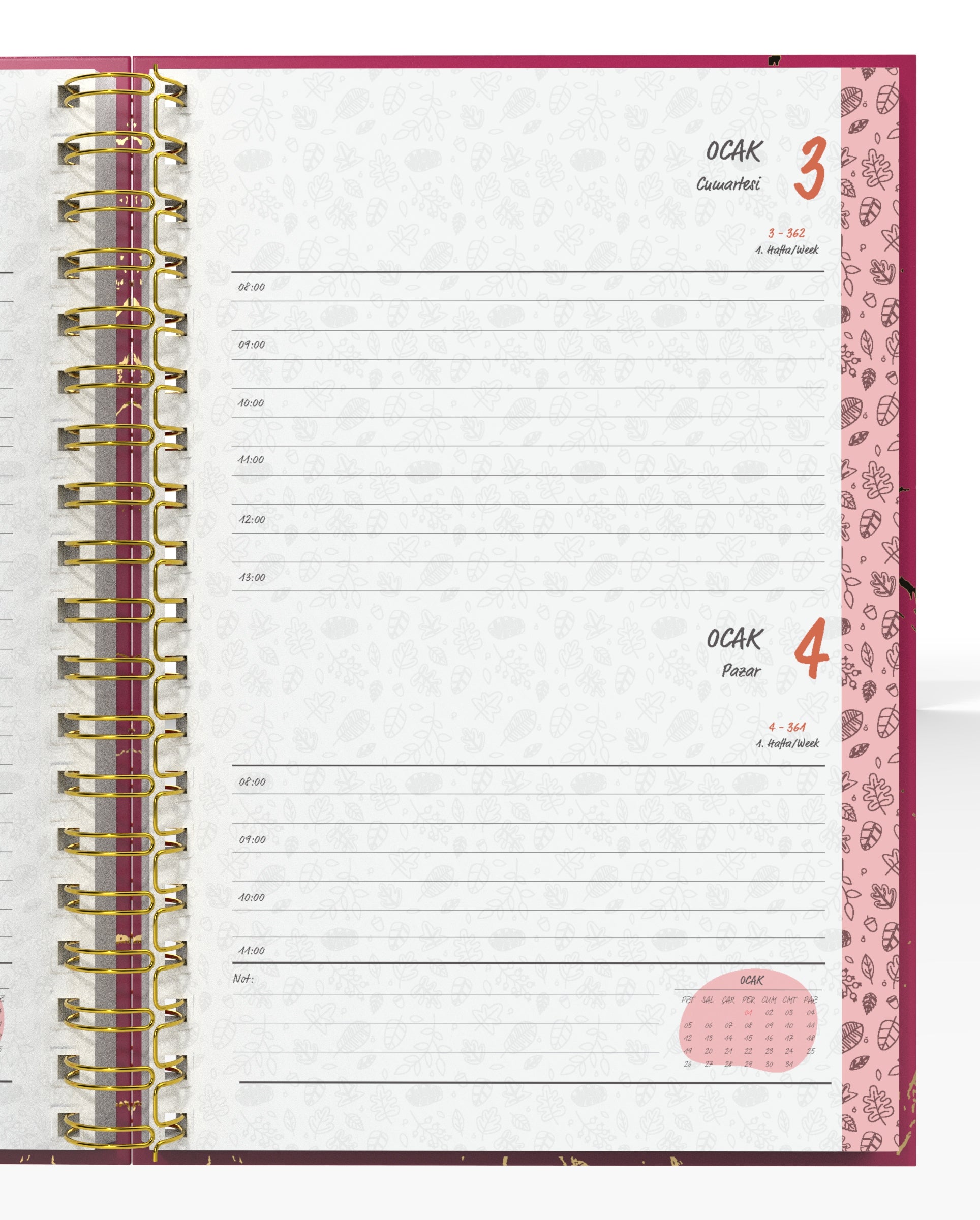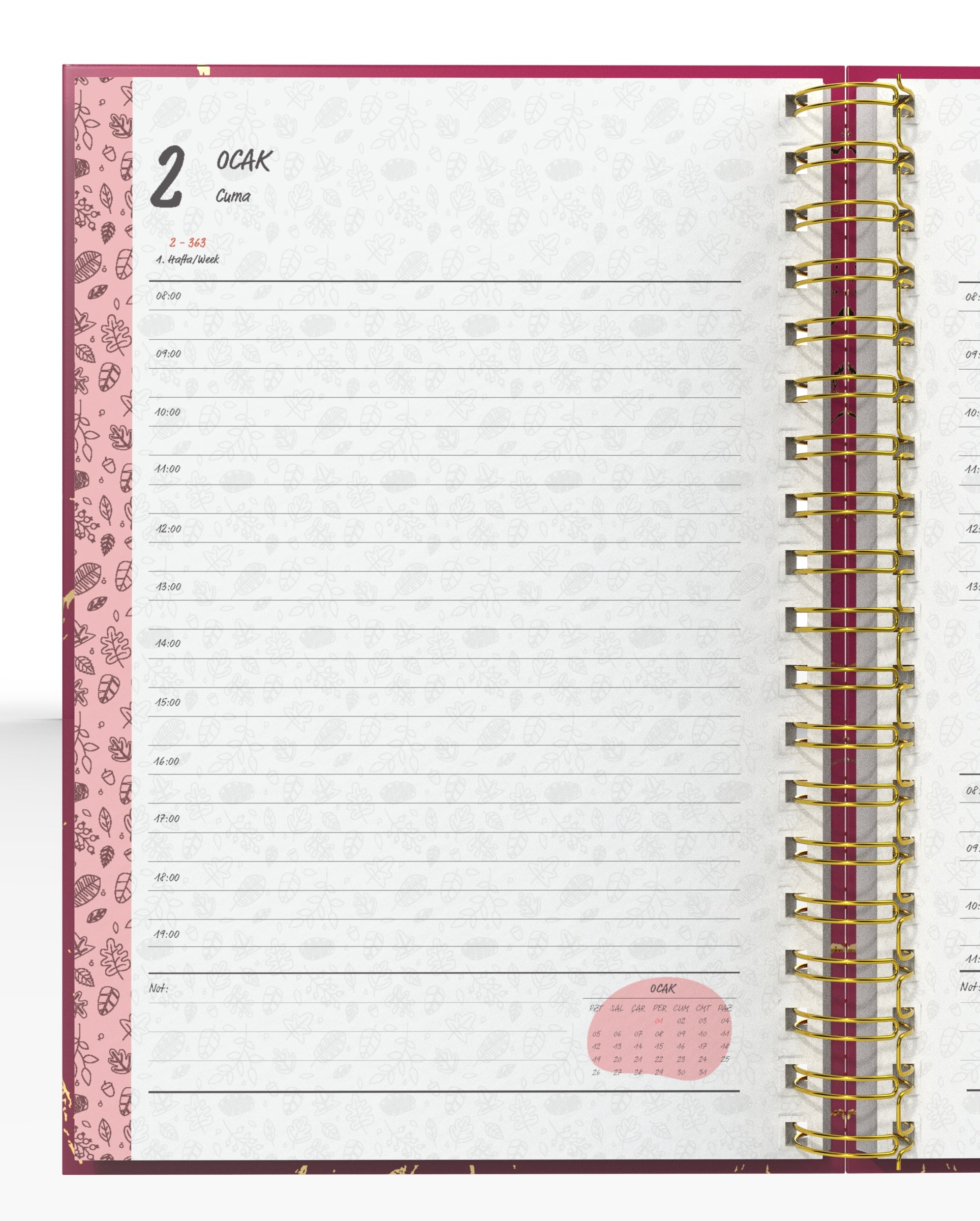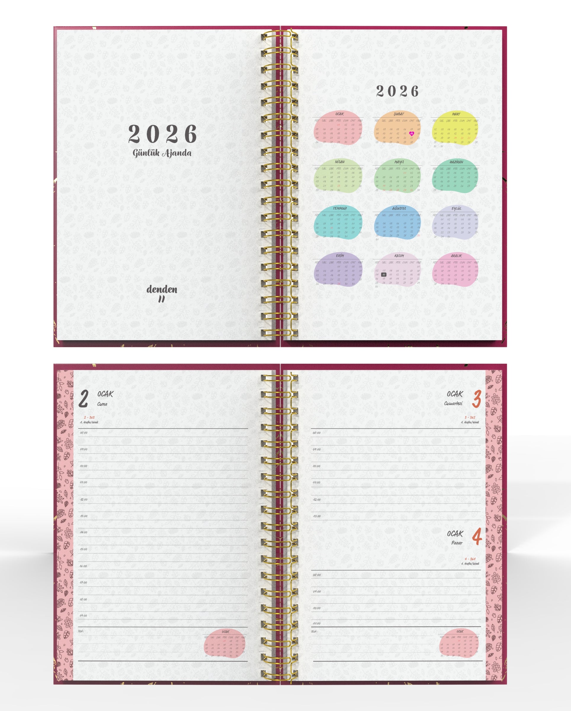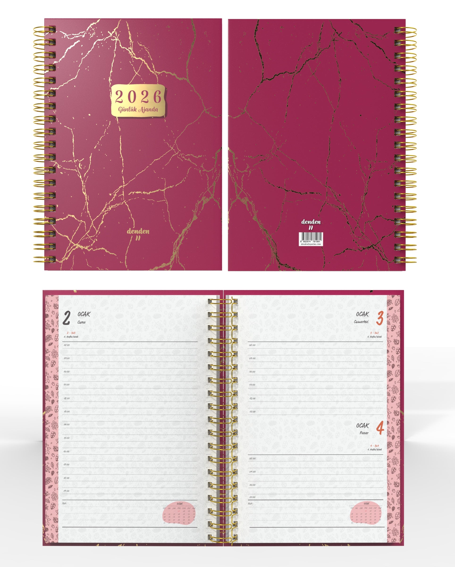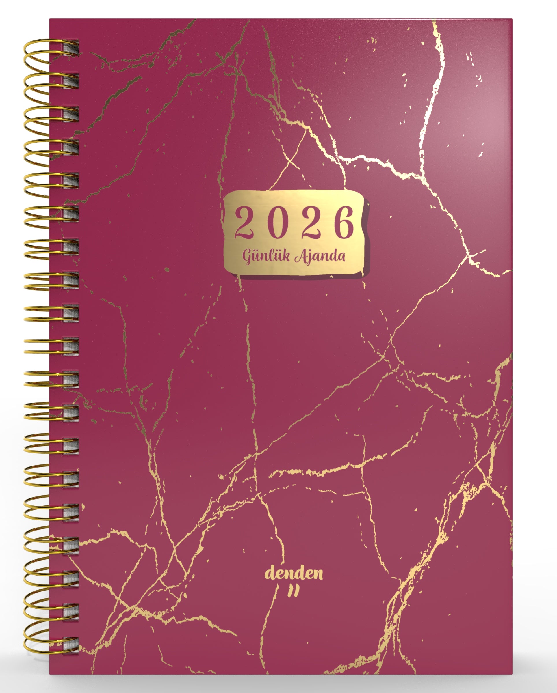Denden Spiralli 2026 Ajanda Mermer Kırmızı