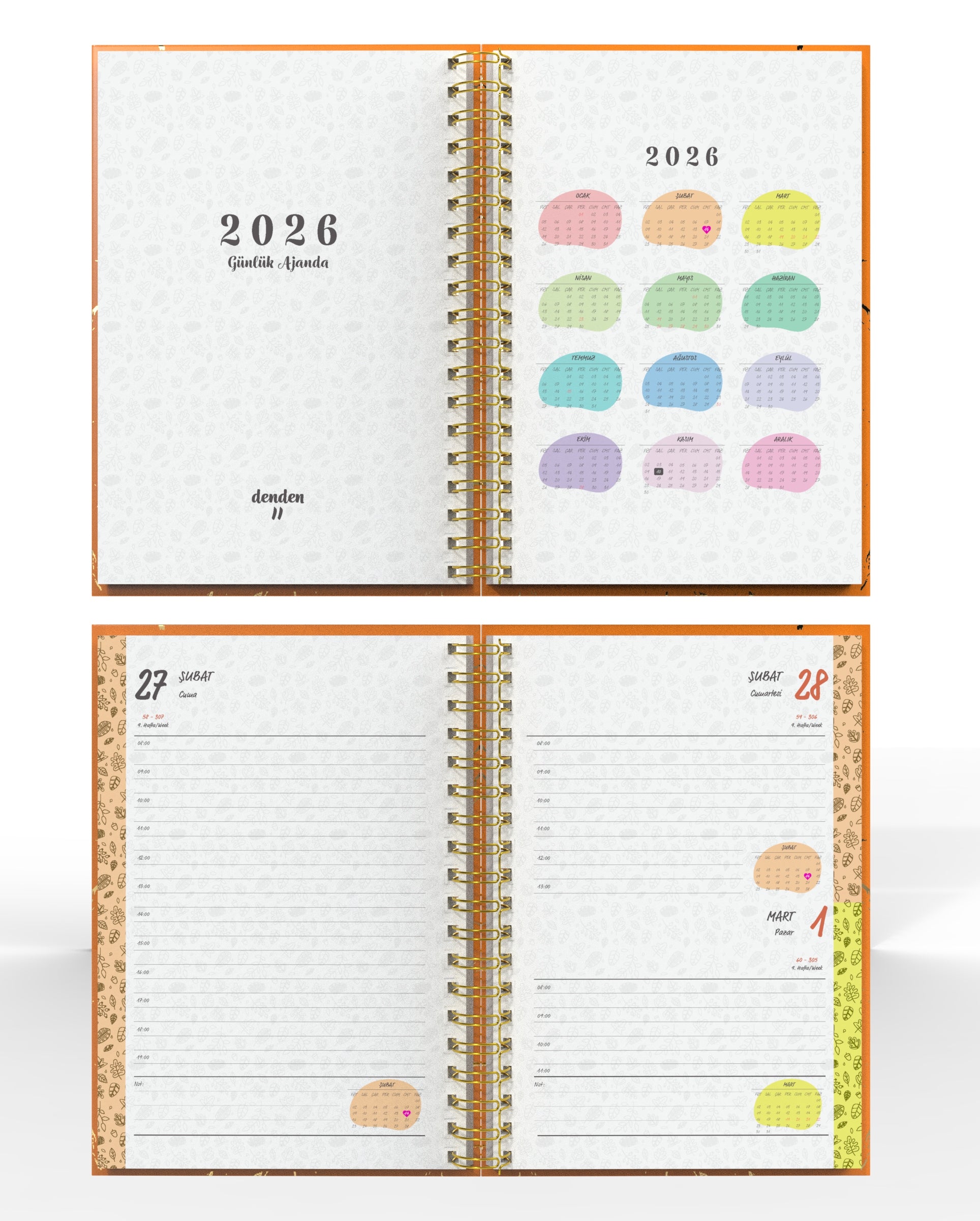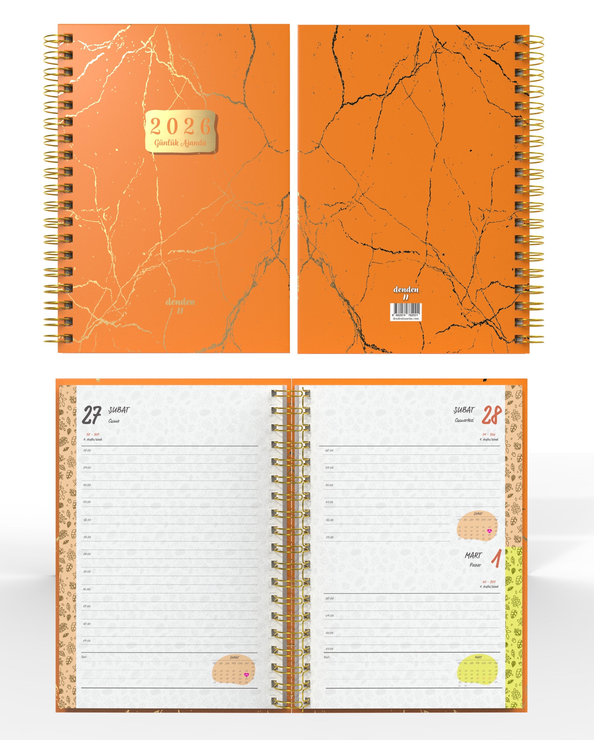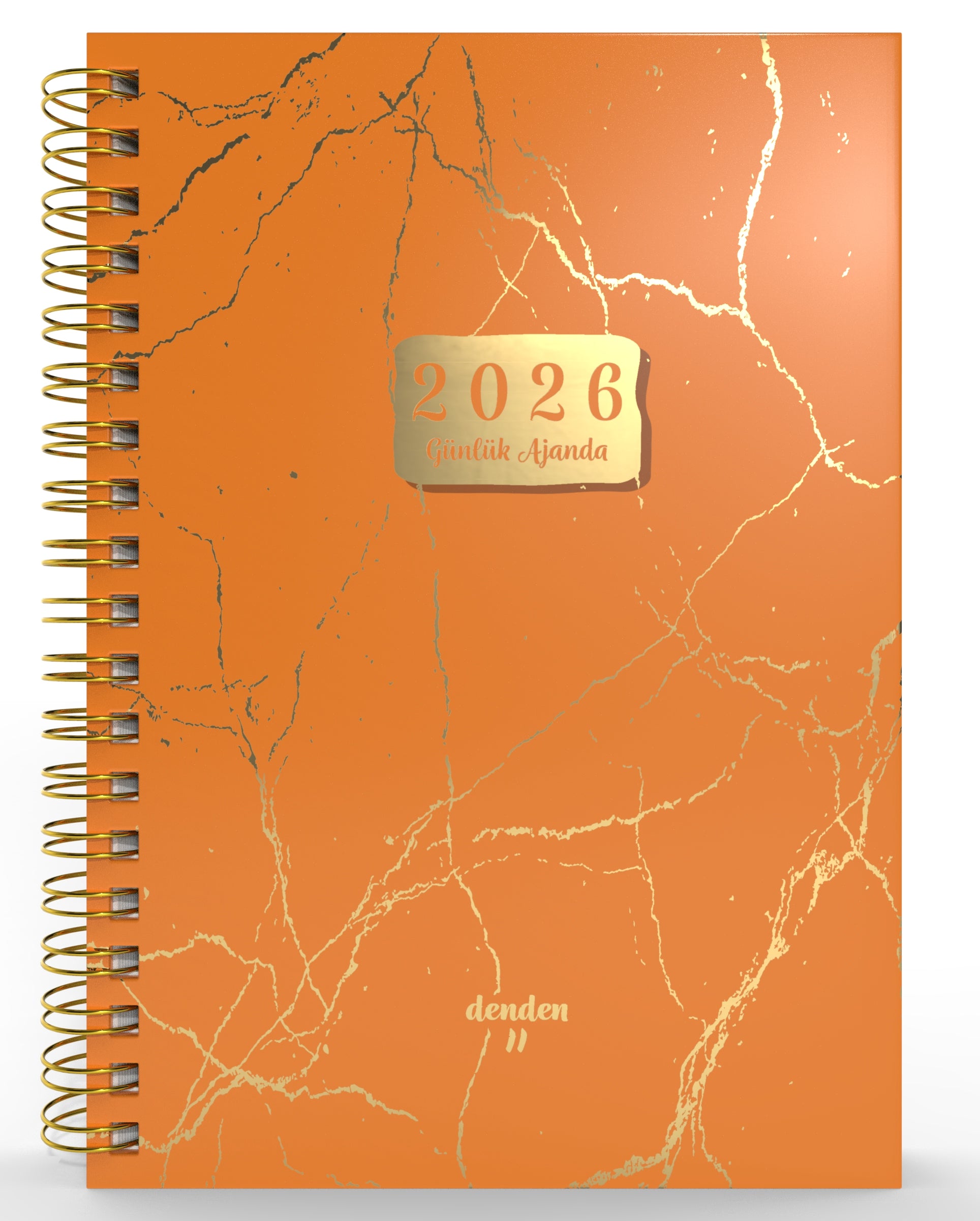 Denden Spiralli 2026 Ajanda Mermer Turuncu