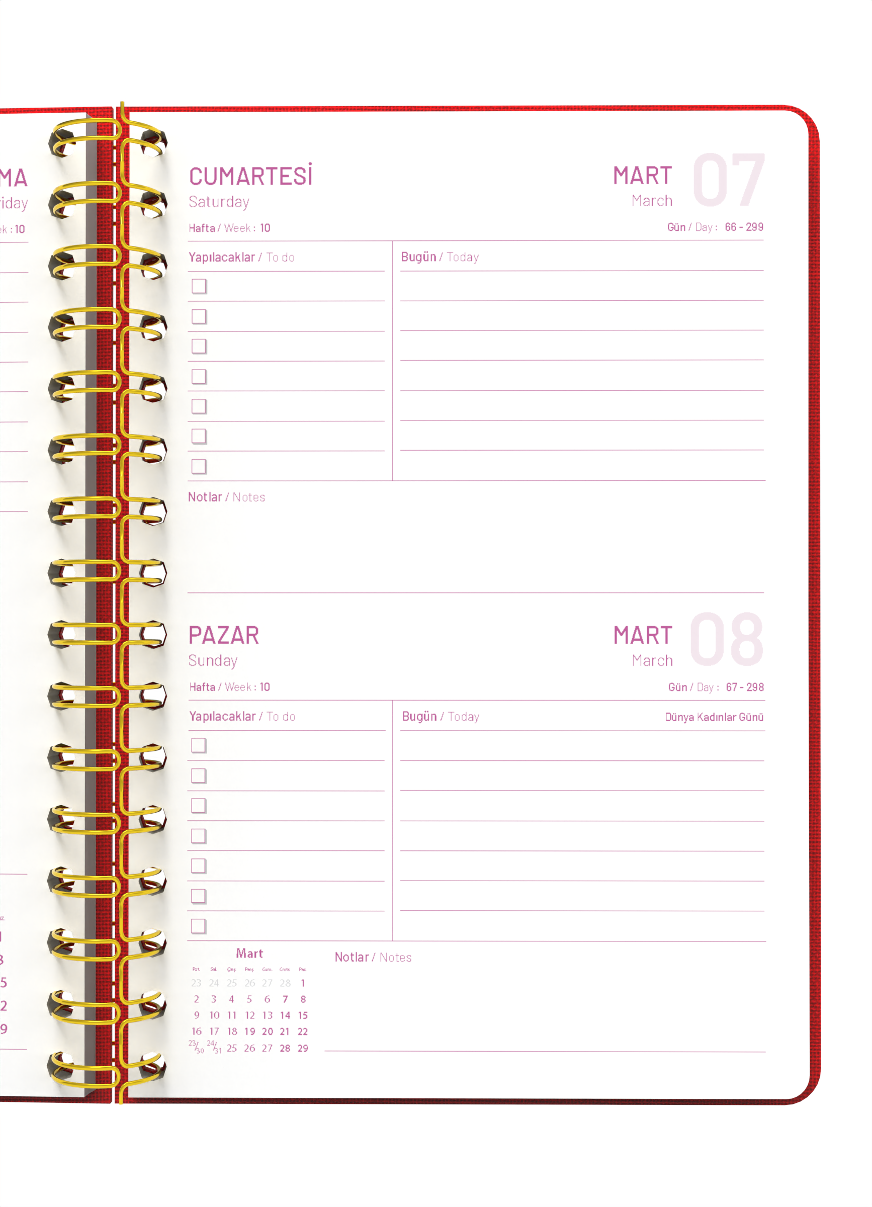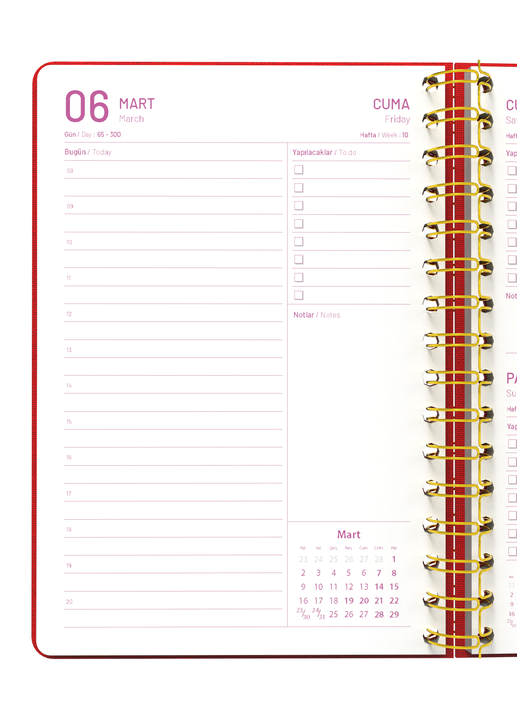 - Her güne 1 sayfa plan düzeni