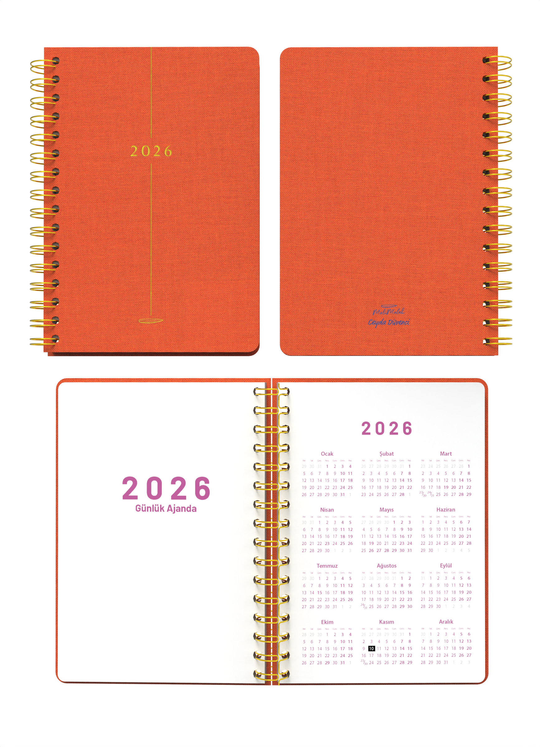 Yeni yılda planlı, farkında ve ilham dolu bir yaşam için Ceyda Düvenci’nin özel tasarımıyla hazırlanmış 2026 Günlük Ajanda sizinle! Turuncu rengiyle canlılığı, bez cilt kapak dokusuyla kaliteyi bir araya getiren bu ajanda; hem tarzınızı yansıtır hem de yıl boyunca size eşlik eder.